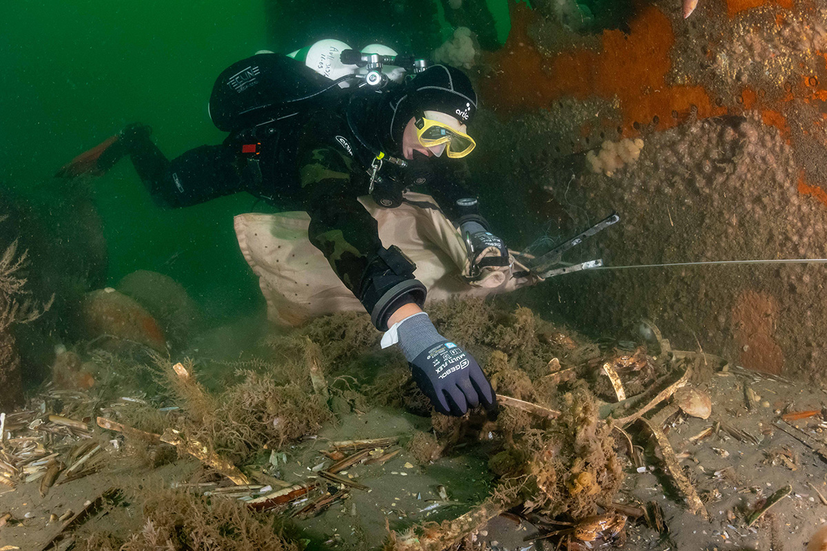 Ik werk al jaren als fotograaf samen met Stichting Duik de Noordzee Schoon. Zij hebben zich tot doel gesteld om de Noordzee een stukje schoner achter te laten door visnetten, lood en lijnen te verwijderen van de wrakken. Als fotograaf leg ik het belangrijke werk vast wat de duikers doen om te voorkomen dat dieren in de netten verstrikt raken.